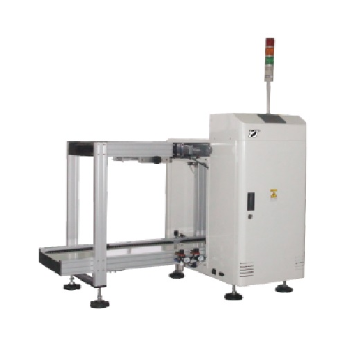 自动上板机配合各种上下板架(MAGAZINE),可以应对不同大小PCB的传输。PCB需预先放入上下板架,机器自动根据后面设备的信号逐一推板进入产线,无须用手接触PCB板,更好的保护了PCB板,并可设置自动控制单次升降格数;本机具有升降精度高、自动计数、故障报警功能,是实现全线自动化的必备设备。